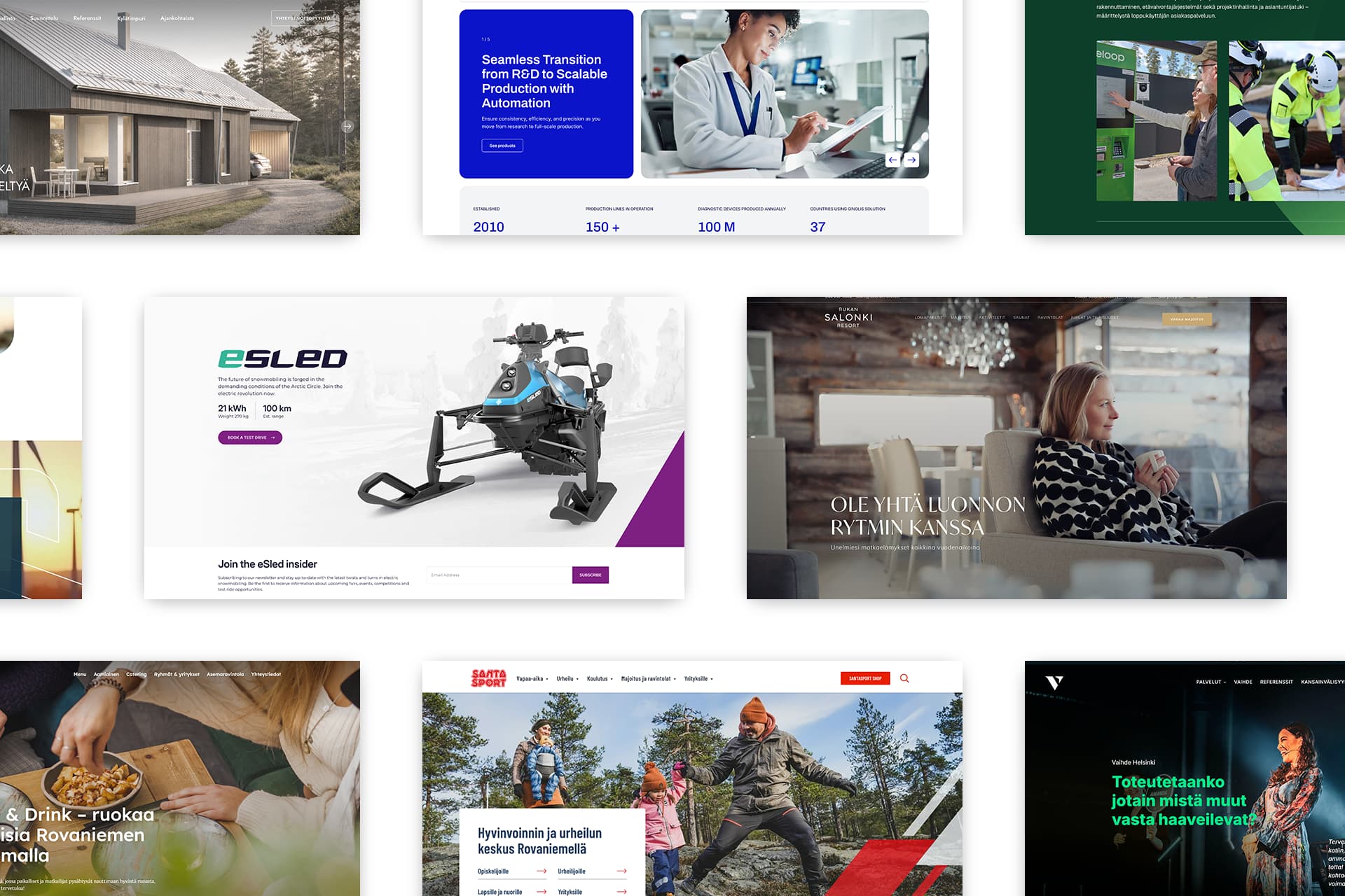 Olemme palvelleet Höyryn perustamisesta lähtien useita satoja yrityksiä, joiden koko on vaihdellut yhden ihmisen yrityksistä pörssiyhtiöihin. Olemme tarpeeksi pieni toimisto, jotta voimme tarjota henkilökohtaista palvelua, mutta tarpeeksi iso, että voimme tarjota tarvittavat osaajat käyttöösi. Olemme suunnittelleet noin 250 verkkopalvelua ja yli 100 yritysilmettä viimeisen kymmenen vuoden aikana. Jos haluat tietää lisää, niin tutustu työnäytteisiin tai sovitaan palaveri, jossa kerromme lisää.