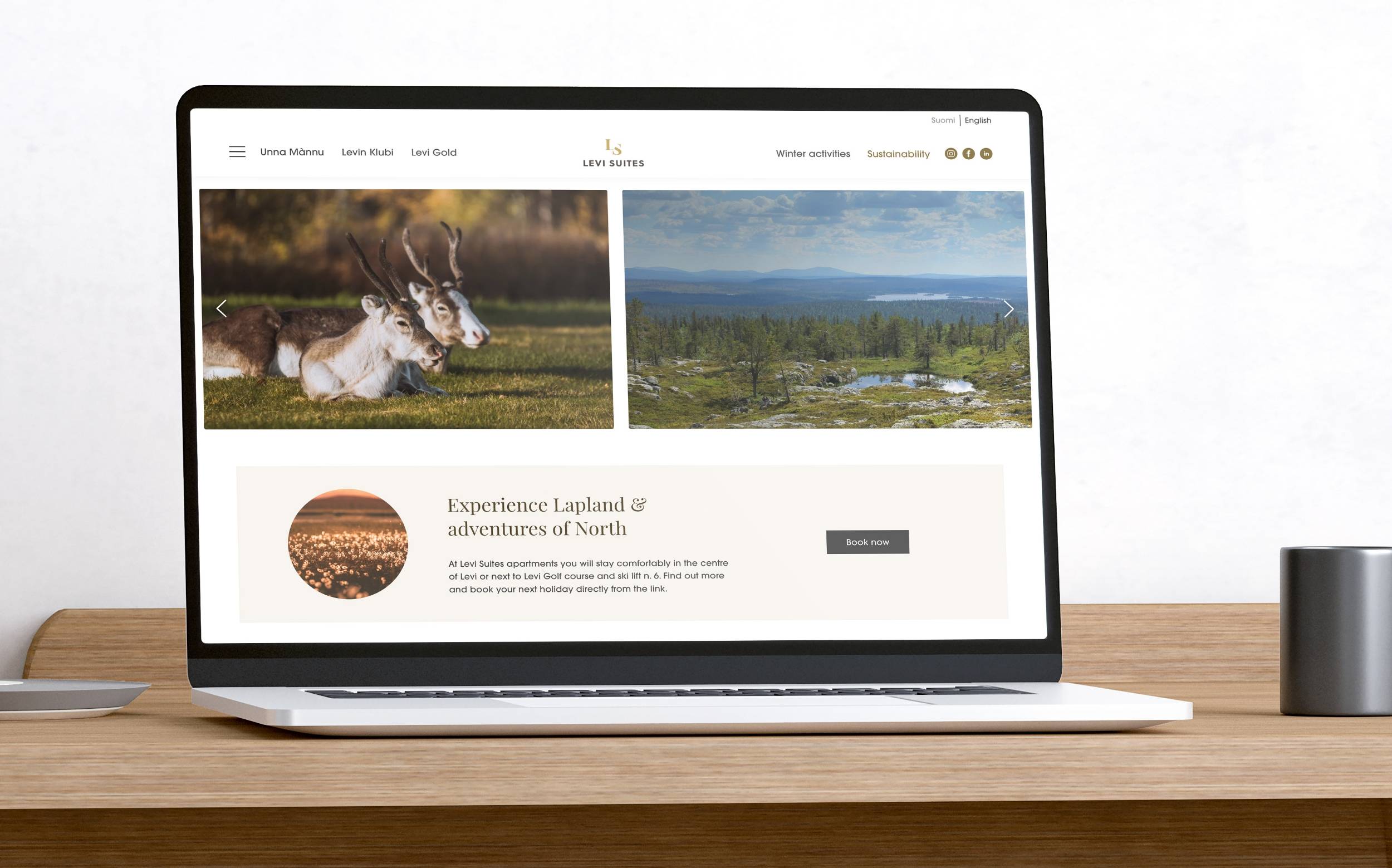 Levi Suites apartment hotels offer space for experiences in Levi. The apartments cater to travellers all year round and the three destinations offer a choice of accommodation for couples, families and larger groups. We were responsible for designing the visual identity of Levi Suites and created the company’s revamped website, which showcases Levi Suites’ offerings and the area’s potential.